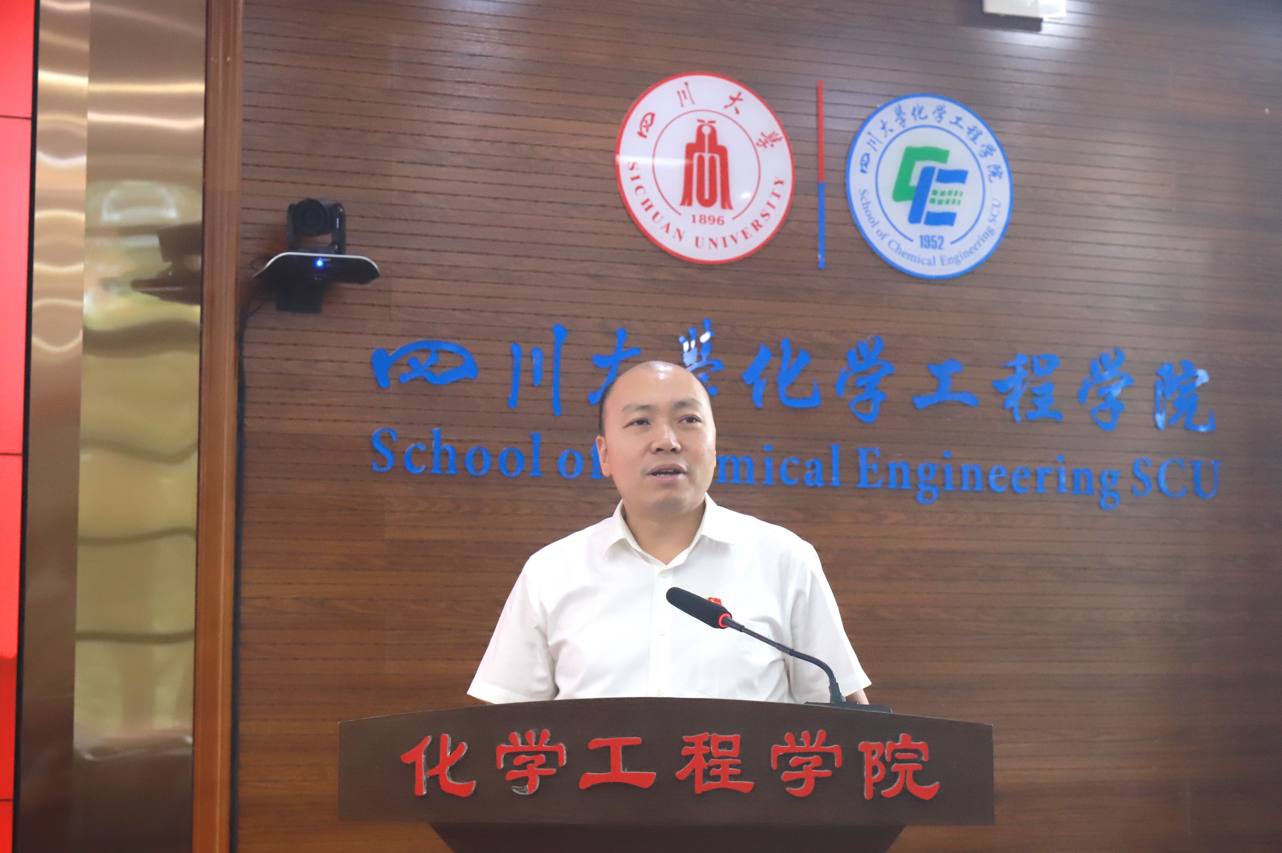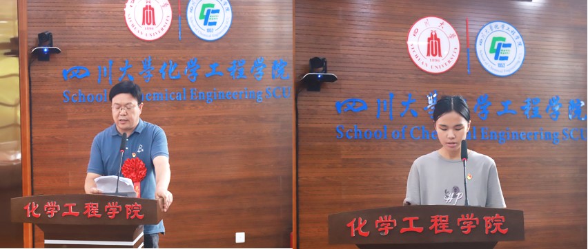 李天友代表学院党委讲话。他首先向受到表彰的优秀个人和集体表示祝贺,向全体党员致以诚挚问候。他说到,一年来,在学校党委的坚强领导下,全院师生牢记立德树人初心,坚守科技强国使命,真抓实干,团结一致,不断推进学院党建与事业发展上新台阶。全院师生党员要不忘初心、牢记使命,潜心教育,努力工作,发扬光荣传统,在实现自身发展、推动学院发展的道路上跑出好成绩,让我们共同的家园——川大化工,越来越好、越来越美、越来越强!