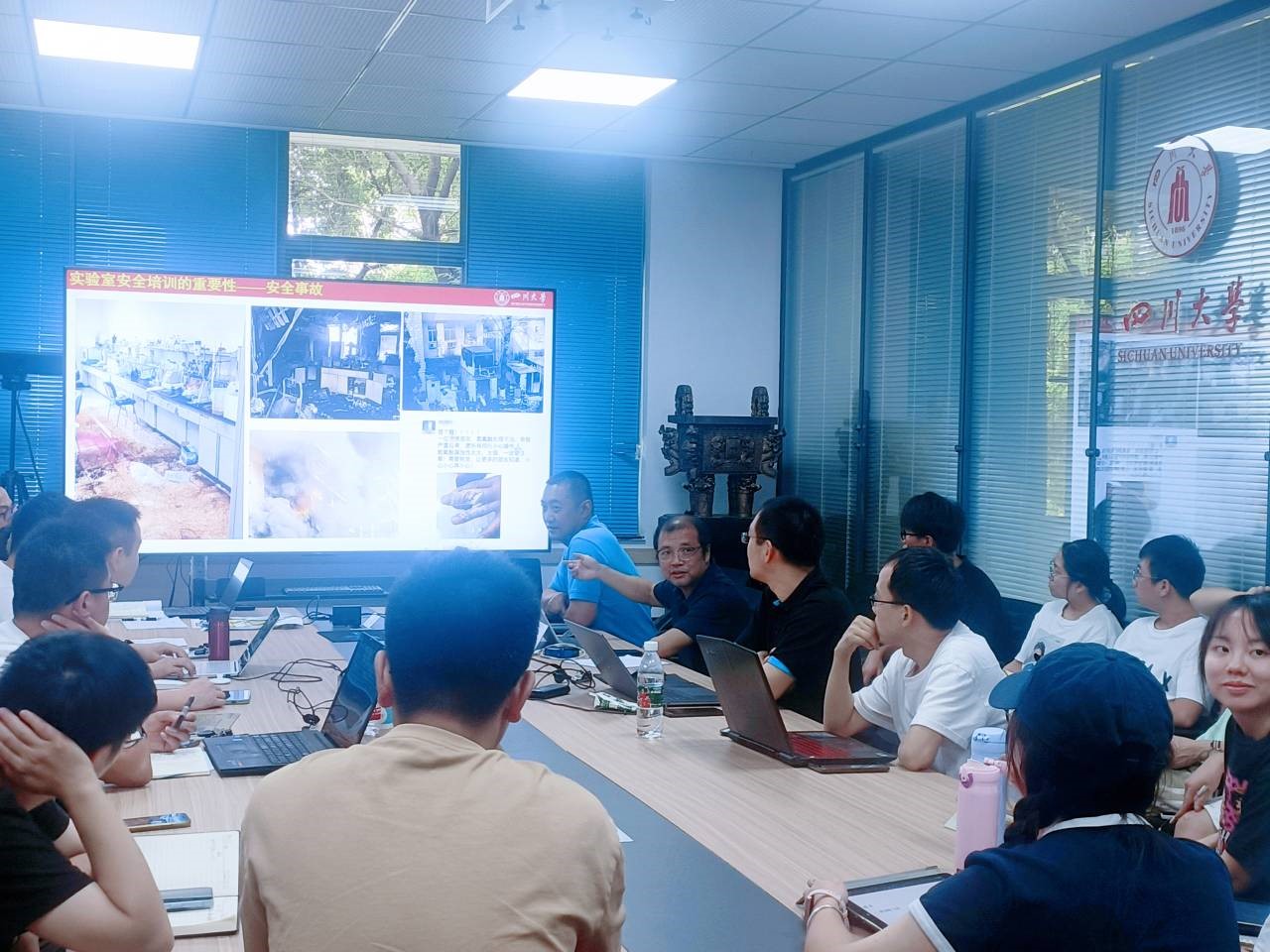 2023年9月10日,四川大学best365中国官方网站蒋炜教授课题组于江安校区第一基础实验楼218进行了全组师生的“化工实验室安全培训”,邀请我院安全专家王袁隆老师进行实验室安全培训,并结合老师讲授、高年级博士生经验分享和小组同学问答形式,以加强同学们实验室安全意识,规范实验室安全行为,提升实验室安全管理水平。安全小组老师和二十余名同学参加了此次安全培训。