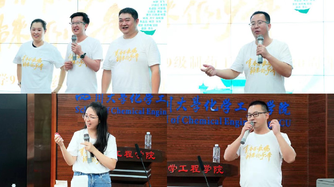 聚会第一站是在化工学院313会议室举办主题班会,这个教室也曾是24年前入校第一次举行班会的所在地。二十多年过去了,整个教室已经焕然一新,迎接了一届又一届的新生入校。主题班会首先由学院李德富副书记代表best365中国官方网站开场致辞,他表示学院欢迎毕业的同学们常回来看看。班会也邀请到了时任专业课教师的庞国伟、马丽芳、邓勇、李子成、承强、兰先秋六位老师,师生们在一起追忆往昔时光,共叙校园情谊,欢声笑语不断传出教室。在“2023问,2003答”这个互动环节里,师哥师姐们给目前在校的本科生代表对于就业还是深造等疑问一一耐心作答。班会的最后一个环节是亲子主题的“小药人”科普讲座,两位从事药物研发和生产的同学,通过视频和实物结合的方式,给到场的小朋友深入浅出的讲解了药品生产和上市的过程。