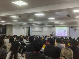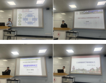 首先,化工系党支部书谢锐老师简要介绍了此次活动的背景,并叮嘱学生要以大学为新的起点,充分汲取知识、储蓄能量、相互学习、共同成长。化工系主任袁绍军老师详细介绍了化工系整体情况,使得同学们对自己的专业有了更加直观、更加深刻的理解。接着,岳海荣老师、黄青松老师、周利老师分别介绍低碳与绿色化工方向、新能源与材料化工、大数据与互联化工三个“化工+X”专业微方向的建设情况。三位老师结合具体案例深入浅出地介绍了各个微方向的特色、面向的国家需求,让学生明白要学什么,可以干什么,叮嘱同学们珍惜大学四年的宝贵年华,提高自主学习能力,努力学习专业知识,提升专业能力。