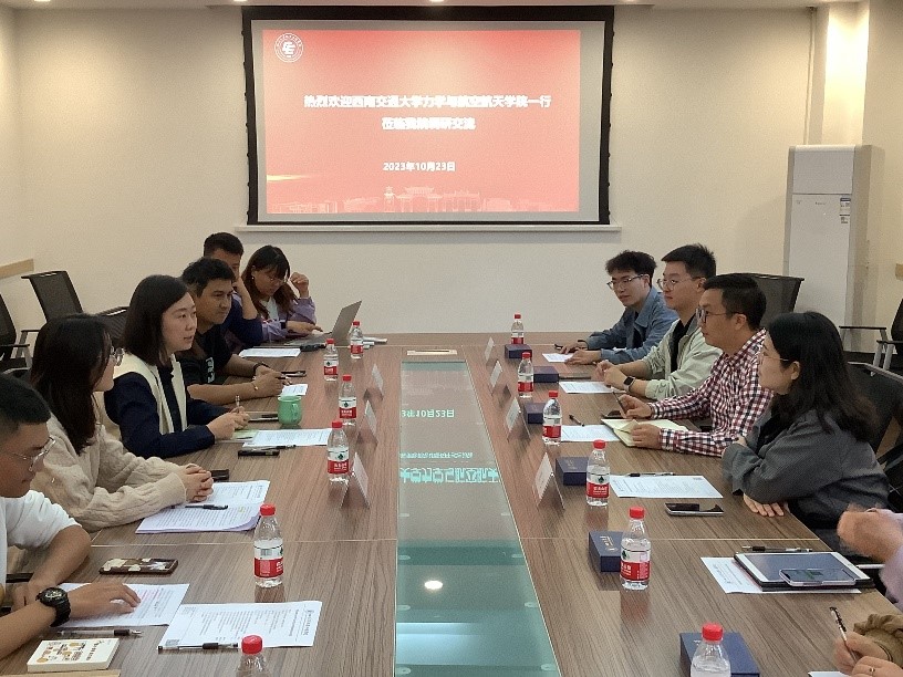 2023年10月23日16:00,西南交通大学力学与航空航天学院党委副书记孔祥彬莅临我院开展学生管理、学生工作经验调研交流,西南交通大学力学与航空航天学院研究生辅导员熊兰、本科生辅导员安晨斐、免研辅导员唐珂和研究生会6名骨干成员随行。best365中国官方网站党委副书记姜利寒、学生科科长帕哈尔定、研究生辅导员兼研会指导老师杨秀英对孔祥彬一行表示热烈的欢迎。本次调研交流活动于四川大学望江校区best365中国官方网站227会议室进行。