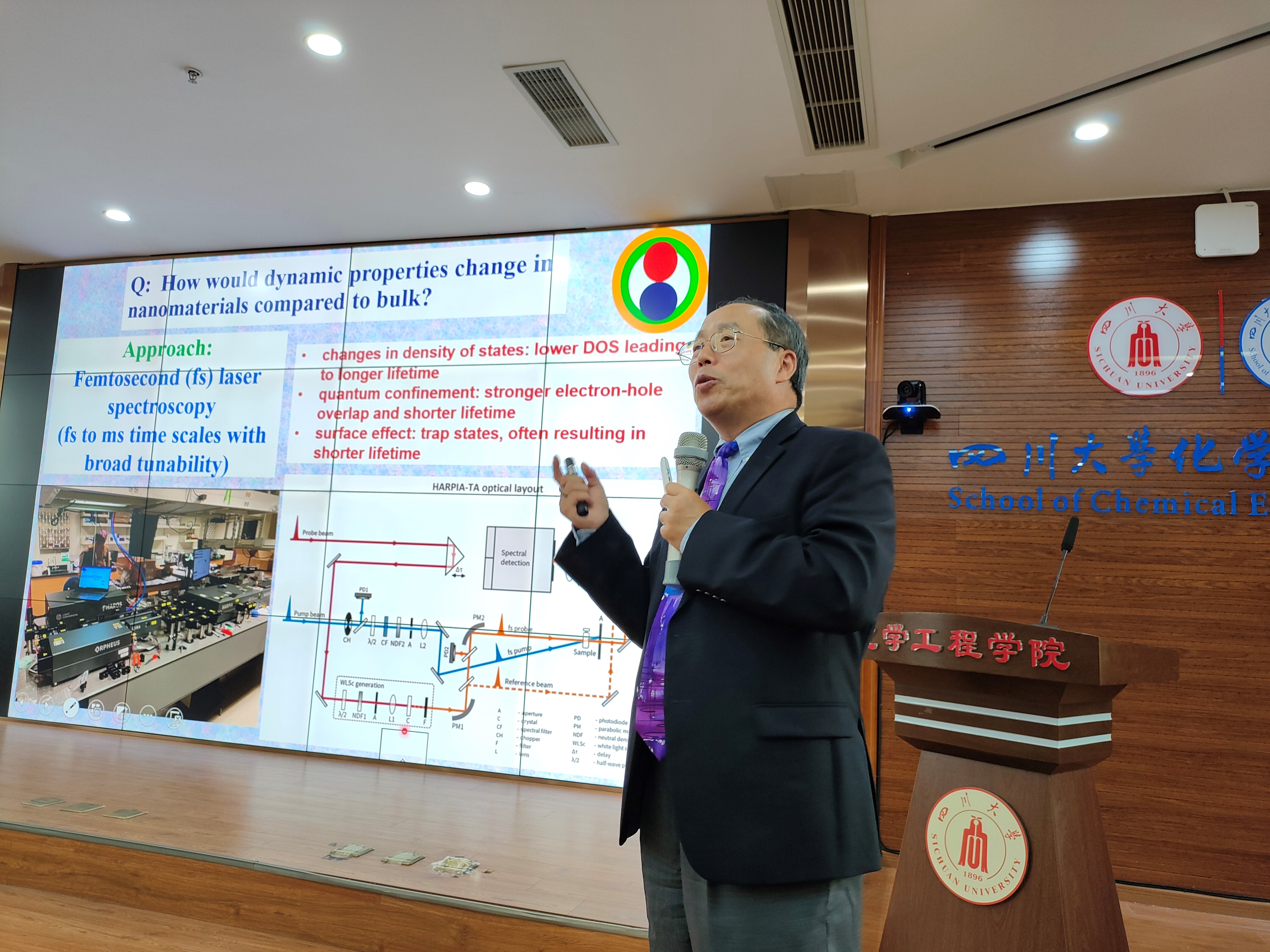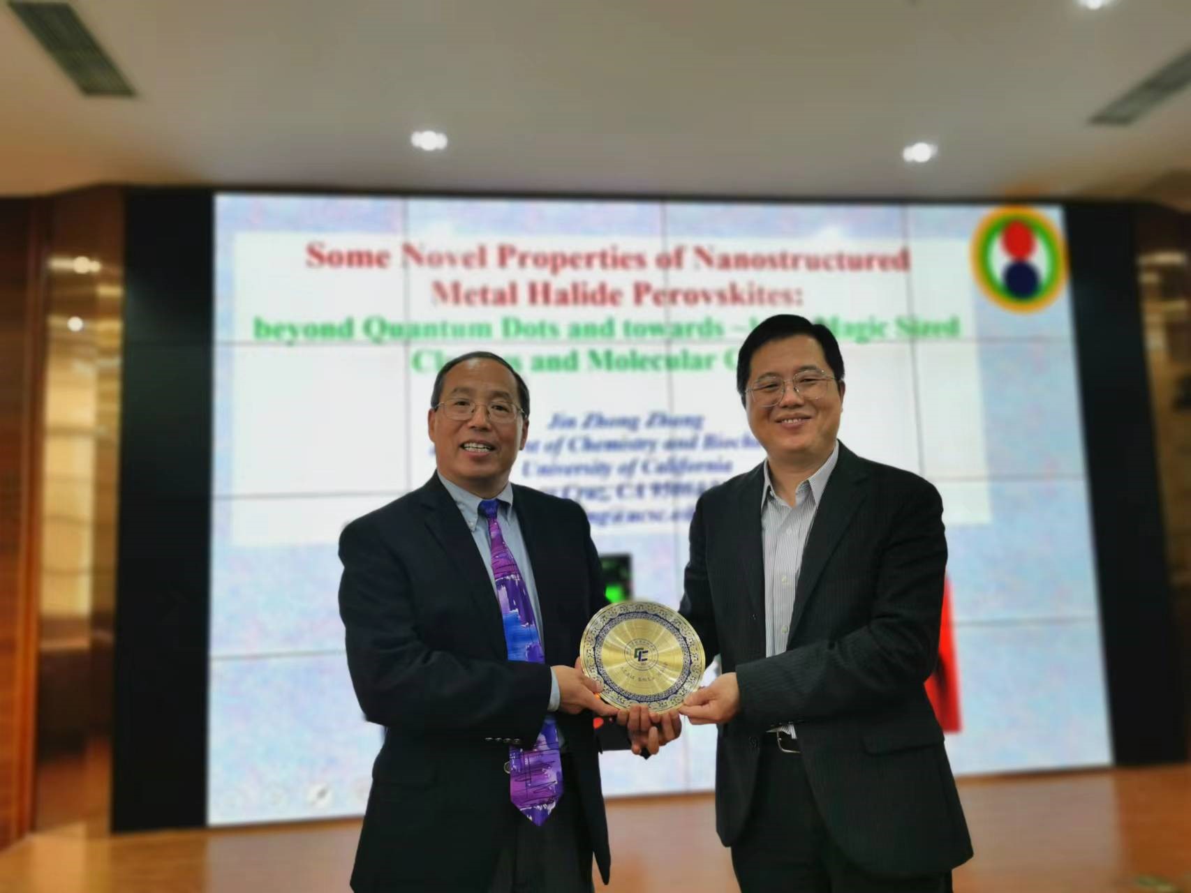 2023年10月24日上午9:00,加州大学圣克鲁斯分校杰出教授、Journal of Physical Chemistry Letters行政编辑和ACS Physical Chemistry Au高级编辑张金中先生应邀做客化工学术大讲堂系列讲座,并在best365中国官方网站313报告厅作了“Some Novel Properties of Nanostructured Metal Halide Perovskites: beyond Quantum Dots and towards ~1 nm Magic Sized Clusters and Molecular Clusters”为题的精彩学术报告。本次讲座特邀我校余睽教授出席,余教授也带来了“Introduction to the Nobel Prize in Chemistry 2023”的精彩报告。此次讲座由化工学院王贵欣教授主持,来自化工学院、材料学院、物理学院、华西医院等相关学院师生聆听了本次学术报告。