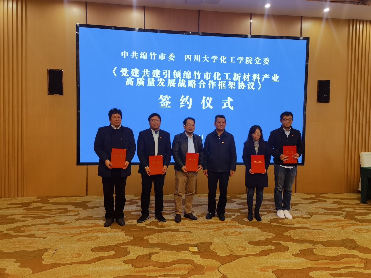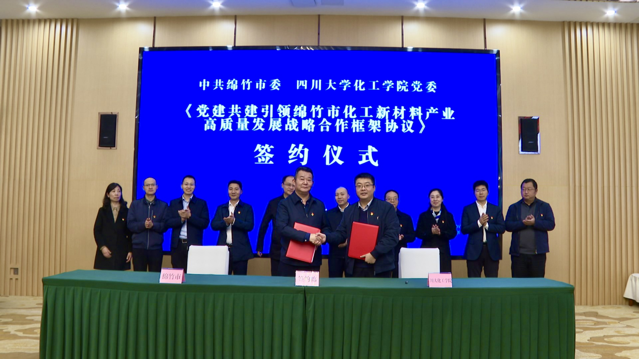 下午,四川大学化工学院党委与中共绵竹市委签订战略合作协议,并就化工新材料产业深度合作进行座谈。