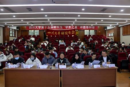 2023年12月1日14时,四川大学第十五届研究生“学术之星”评选答辩会于四川大学望江校区best365中国官方网站楼313会议室举行,本次会议由四川大学研究生会主办,best365中国官方网站研究生分会与机械工程学院研究生分会共同承办。秉持着“博学,审问,慎思,明辨,笃行”的主题思想,本次研究生“学术之星”评选答辩会旨在充分展示川大学子的学术精神,发挥学术榜样的引领作用,鼓励全校研究生积极进取,提高自身学术水平,为全校学子营造潜心向学、勇攀高峰的科研氛围。四川大学研究生工作部副部长卢莉、文学与新闻学院教授刘颖、华西公共卫生学院特聘副研究员章炜、物理学院研究员林炜平、华西公共卫生学院副研究员蒋静文、电子信息学院副研究员陈洪刚、机械工程学院副研究员谢罗峰作为评审专家出席本次会议。“百花齐放、百家争鸣”,来自不同学院的35名“学术之星”候选人参与此次答辩,并吸引了百余名不同专业的学子与会。