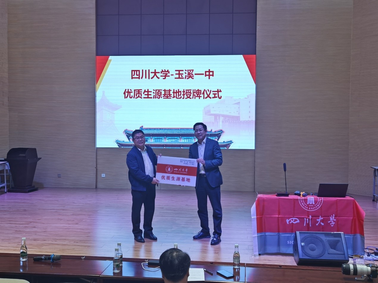 在玉溪一中演讲厅,张磊主任首先向高三学子详细介绍了四川大学的办学历史、综合优势、学科专业、办学条件和招生政策等。之后,张磊主任代表四川大学为玉溪一中授予了“四川大学优质生源基地”称号,鼓励更多优秀的玉溪一中学子报考四川大学,到四川大学学习、生活和发展。