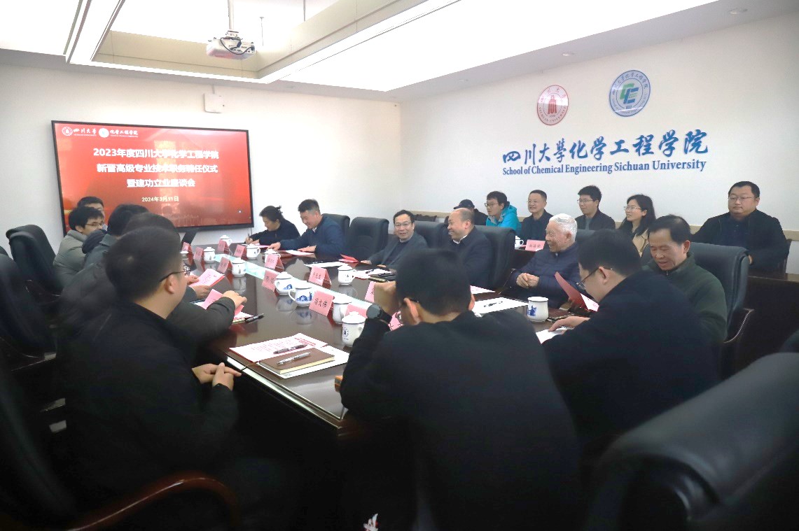 3月11日,学院在望江校区化工楼举行2023年度新晋高级专业技术职务聘任仪式暨建功立业座谈会。四川大学副校长游劲松出席会议并讲话。学院党委书记李天友、院长郭孝东、副院长钮大文、副书记兼纪委书记李德富,学院教授委员会主任王辛龙、教学指导委员会主任黄卫星、教学督导组组长谢川、关工委副主任梁明征,以及新晋高级专业技术职务全体教师参加会议。李德富主持会议。