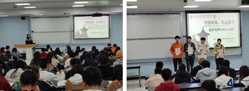 在活动开展前期,2022级学院辅导员李忆雯、袁玲老师深入了解班级学习情况,全面摸排学生学习习惯、学习态度,重点调研学生学风的现状以及存在的问题等。根据前期收集的学情调研情况,3月15日下午召开了年级大会,对全年级的基本学情和秋季学期考试成绩做了整体分析,同时在会上为秋季学期“助学先锋”颁发荣誉证书,鼓励同学们脚踏实地,矢志奋斗。