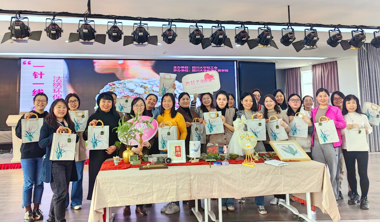 活动得到了四川大学工会和吾同文化大力支持,大家为活动的顺利开展精心布置场地,营造了温馨、高雅的氛围,让参与的女职工倍感亲切和愉悦。四位老师带领女职工们了解法式刺绣的历史和发展过程,学习品鉴法式刺绣作品,并现场制作精美的胸针。大家兴趣盎然、跃跃欲试,在老师们的指导下纷纷制作出了独一无二的作品。