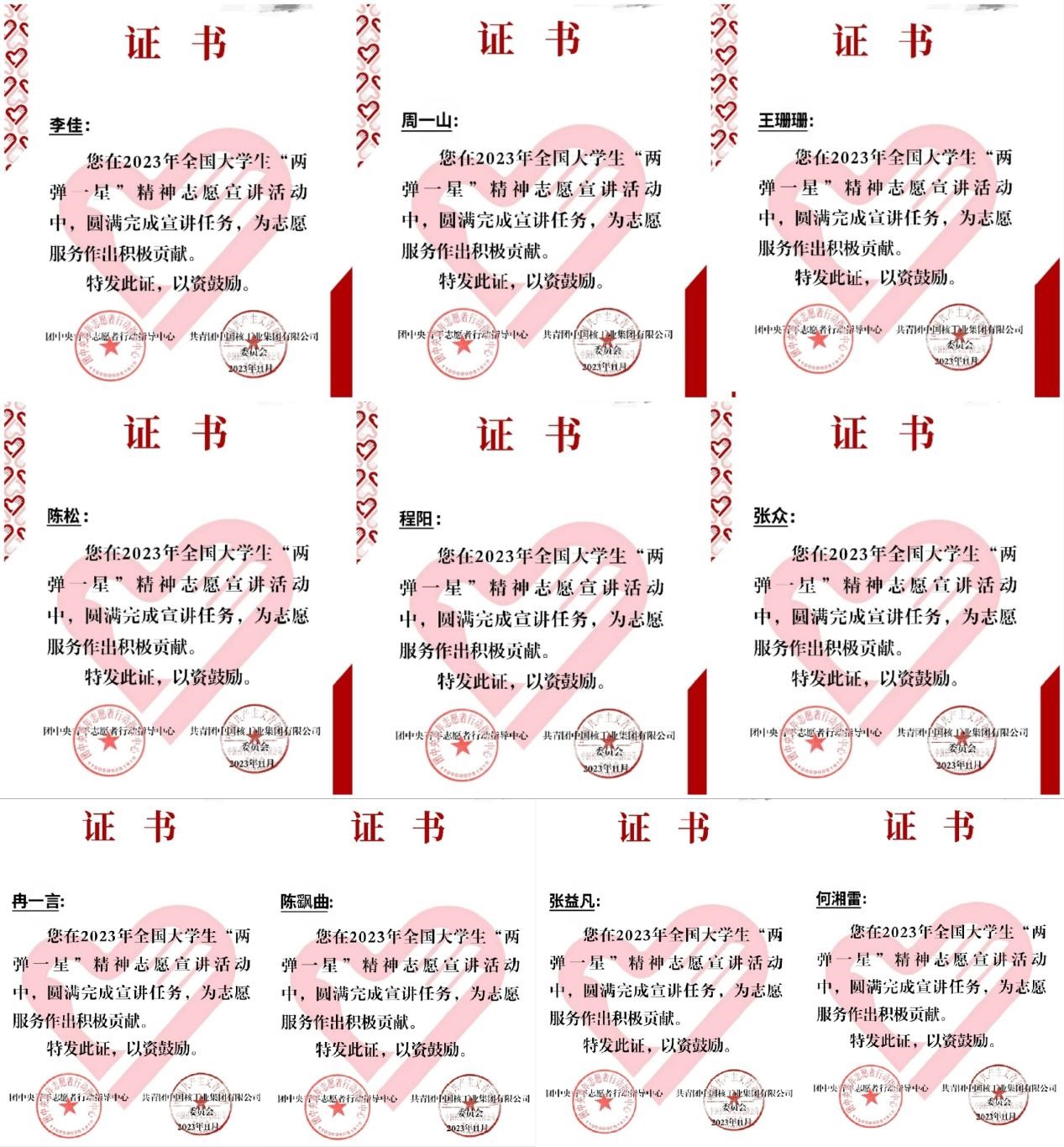 团队成员圆满完成志愿宣讲证书