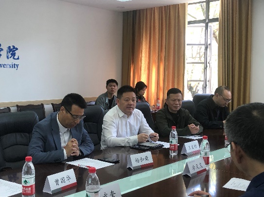 参观结束后,交流会议正式开始。李天友首先对杨和荣董事长、王宏标主任一行表示热烈欢迎。他表示大力开展校企交流合作,在推动科研成果转化的同时,能够以科研成果有效促进行业科技进步,共同为社会做出更多贡献。王宏标主任也表示,校企合作促使产学研紧密结合,积极响应于国家大力发展新质生产力的要求,能够更好地服务于社会。
