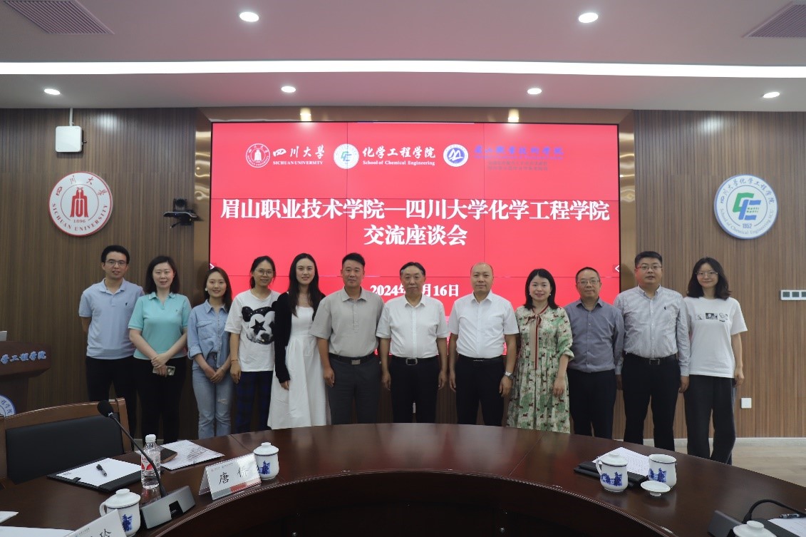 代贤军书记介绍了眉山职业技术学院有关情况。他说到,为贯彻落实习近平总书记对职业教育工作的重要指示精神和市委市政府“制造强市”战略部署,服务支撑眉山“1+3”产业发展,眉山职业技术学院于2022年8月组建天府新能源新材料产业学院。产业学院紧紧围绕眉山支柱产业,大力发展应用化工技术、精细化工技术、新能源技术、化工生物技术等眉山市产业急需的专业。他提出,希望四川大学best365中国官方网站为产业学院输送优秀人才,也期待双方能够在化工专业人才培养、学生实习实训、师资队伍建设、科研合作等方面加强合作,建立更加紧密的关系,共同服务地方和区域经济发展。廖敏、陈婷婷等补充介绍了合作意向。