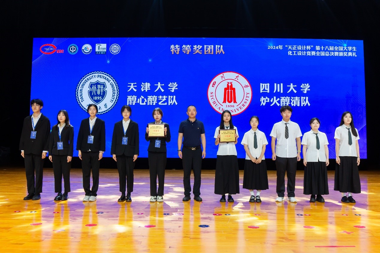 在8月22日结束的2024年“天正设计杯”第十八届全国大学生化工设计竞赛全国总决赛中,四川大学“炉火醇清”团队从3685支参赛队伍中脱颖而出,斩获全国总决赛特等奖。这是我校2012年以来连续13年获得全国特等奖的殊荣(其中2012,2016获得全国总决赛金奖第一名)。