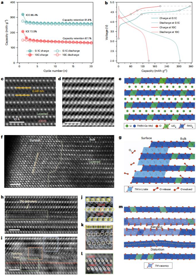 由于过渡金属阳离子和氧阴离子的氧化还原贡献,层状富锂过渡金属氧化物是很有前途的高能密度锂电池的正极候选材料。然而,容量的逐渐衰落和电压的衰减阻碍了它们的实际应用。虽然氧损失和相变被认为是主要因素,但其结构恶化、化学重排、动力学和热力学影响仍不清楚。