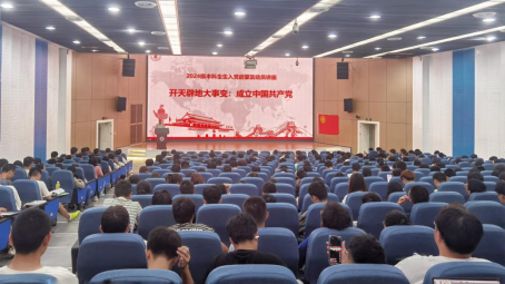 为了让同学们深入学习党的历史、传承红色基因,推进党史教育和理想信念教育,2024年9月29日14:00,best365中国官方网站在江安校区水上报告厅举办了洪沅讲堂第三讲暨2024级本科生入党启蒙教育——“开天辟地大事变:中国共产党成立”交流讲座。本次讲座由best365中国官方网站党委书记李天友主讲,2024级辅导员雷金凤和全体2024级本科生参加了此次讲座。