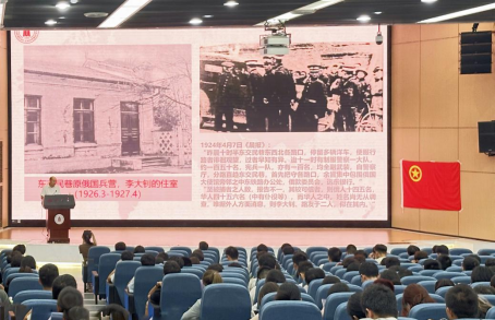 随后,李天友从三个方面讲述中国共产党成立。19世纪和20世纪初中华民族经历的苦难、近代民族复兴各种力量的艰难探索、五四运动和马克思主义在中国的传播,让同学们对中国共产党成立进程有了更深入的认识。同时,李天友就三个方面——中国共产党成立的时代背景、中国共产党的创立与中国共产党成立的时代意义进行了细致讲述,引导同学们从中国共产党的成立进程汲取力量,深刻认识到中国共产党的成立是中国近代史上开天辟地的大事变。