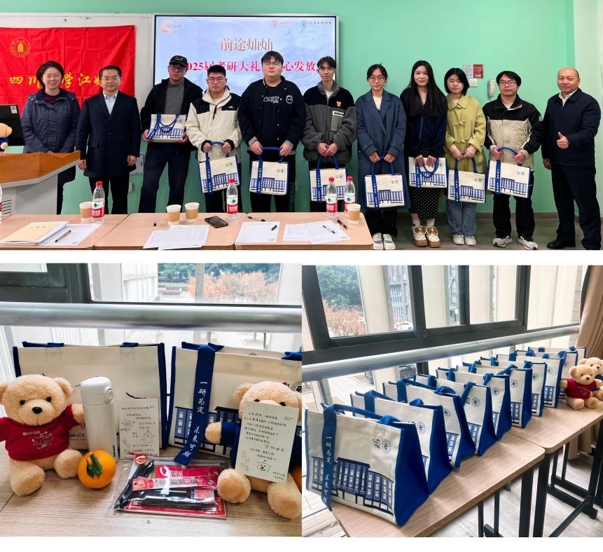 褚良银为江姐班考研同学,发放学院精心准备的暖心大礼包,同时祝福同学们在即将到来的全国硕士研究生招生考试,所有考研学生都可一“研”为定,成功上岸!