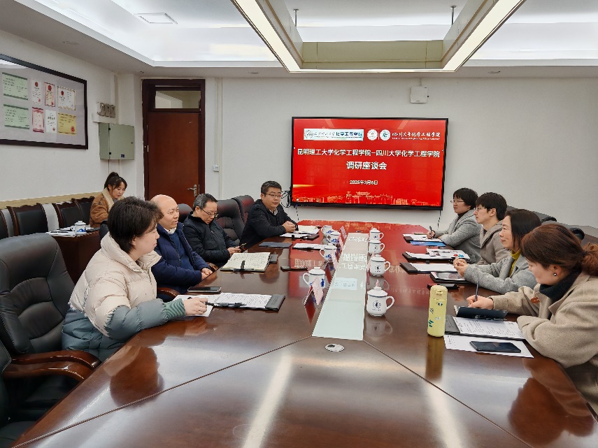 3月6日,昆明理工大学best365中国官方网站党委书记李云燕、副书记宁玲、副院长朱远蹠、辅导员常静华一行四人来院开展座谈交流。学院党委书记李天友、副院长唐盛伟、副书记姜利寒、副书记兼纪委书记李德富和院党政办主任高敏参与座谈。