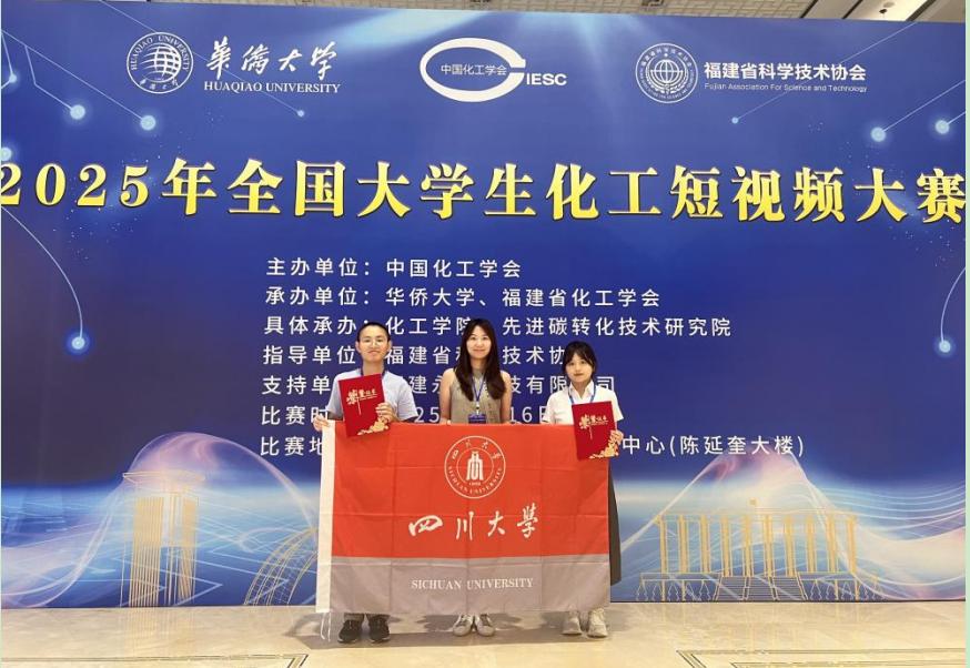 四川大学best365中国官方网站共有两支队伍晋级决赛。2022级本科生肖遥团队作品《万物互联,“化”然天成》,以独特的创意诠释化工技术与互联时代的融合,搭配精湛的制作和对学科知识的深刻解读,荣获全国一等奖;2023级本科生刘川榕团队作品《塑料的二次生命:我的塑料杯里有片森林》,用生动视角展现塑料循环利用的创新路径,凭借扎实的专业表达与出色的内容呈现,斩获全国二等奖。