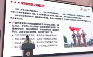 会议第三项,付率老师为2025级新生开展军训动员大会,首先强调了军训的重要意义和目的,教育同学们端正态度;接着,介绍了本次军训的主要训练内容和军训课程的相关要求,着重强调军训纪律,要求参训学生必须严格服从军训管理,提高自身保密意识;同时提醒同学们合理饮食作息,保持身心健康。