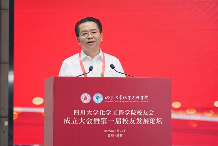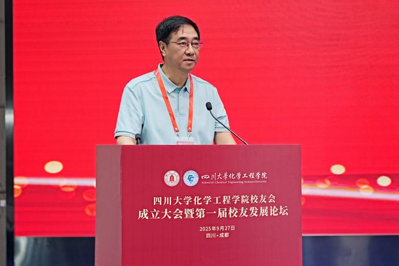 褚良银代表学校致辞,对学院校友会的成立表示热烈祝贺,介绍了当前学校在推进高质量发展中取得的成绩。他强调,学校一直高度重视校友工作,并将校友赋能列为高质量发展的重点任务。诚盼广大校友与母校同心携手,围绕一流大学建设和高质量发展目标,汇智聚力、聚资赋能,共同答好“强国建设,川大有为”的时代命题!