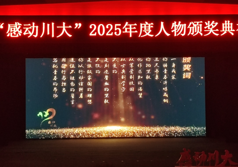 为推进校园精神文明建设,弘扬“川大人”的品格与担当精神,四川大学“感动川大”2025年度人物颁奖典礼于12月12日在四川大学江安校区多学科交叉融合平台及艺术教育中心多功能厅隆重举行。其中,我院本科生杨佳杰以“退伍不褪色,笃学以报国”的感人事迹,荣获“感动川大”2025年度人物称号。