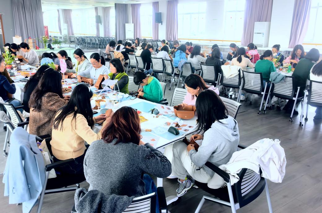 本次活动以“手工包包DIY”为主题,旨在让平日里忙碌于工作的女教职工们,在春日的午后暂离案头工作,体验手工制作的乐趣,感受心灵手巧的魅力。在轻松愉悦的氛围中,女教职工们纷纷化身“能工巧匠”。她们或低头专注地穿针引线,或互相交流切磋缝纫技巧,原本零散的材料在大家的巧手下一一变了模样,逐渐成型为一个个精致、独一无二的手工包包。