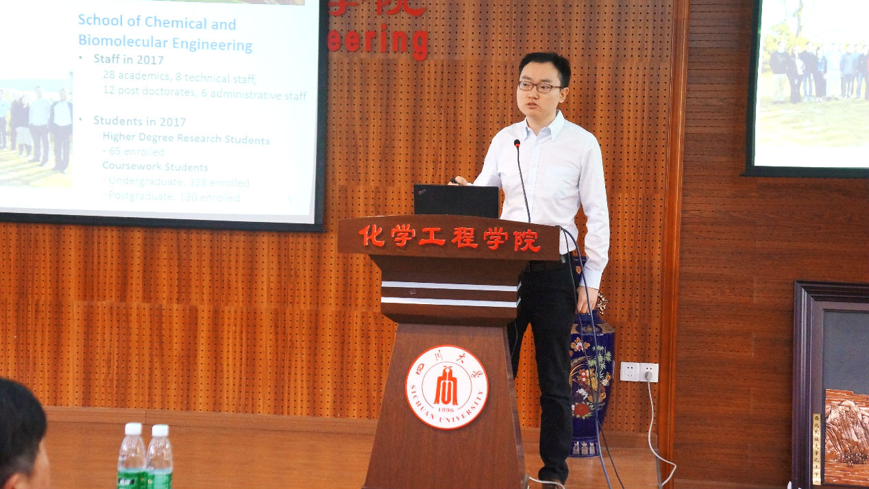 随后,学院副院长钮大文向与会的优秀青年学者介绍了四川大学重点推进的“新海纳人才行动计划”,并热烈欢迎各位青年学者加盟川大化工学院,为国家的繁荣发展和化工科技进步共同努力。