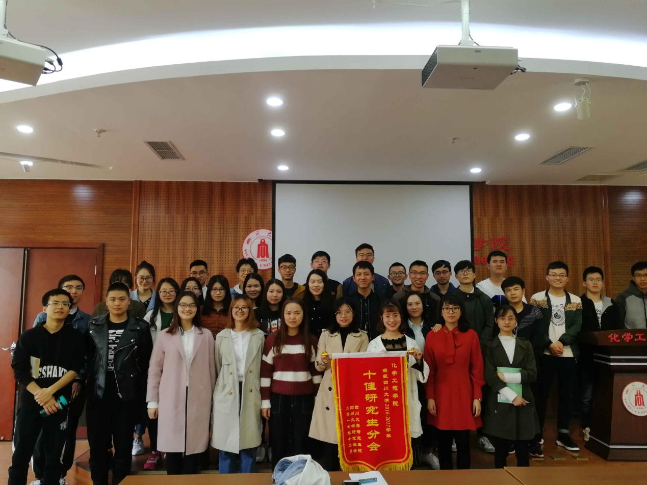 经过四川大学研究生会组织开展的2016-2017学年学院研究生会考核评定, best365中国官方网站研究生会以全校第四的成绩荣获“四川大学2016-2017学年十佳研究生会”称号。该年度,best365中国官方网站研究生会在四川大学研究生会的指导下,始终坚持以“服务同学,完善自我”为指导理念,围绕学校工作重点,深入开展创先争优系列活动,不断强化自身建设,全力打造“化工论坛”、“学术沙龙”、“职来职往”等品牌活动,力求在求真务实和服务同学的大环境下,不断开拓创新。最终在全校36个学院、所中,以学术科技、外联实践版块列全校第三名,宣传媒体、调研生活、体育版块列全校第六名,秘书组织、文艺版块列全校第八名,总成绩排名第四的佳绩脱颖而出,连续第九年获得此项荣誉。