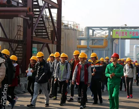 到达现场后,企业的相关领导参与了接待,给同学们发放了安全帽,企业的安全环保部总监唐建军现场讲解安全须知。随后,同学们徒步参观了多聚甲醛项目、热电项目、五钠项目、甘氨酸项目(DCS)、双氧水项目,详细了解了项目在技术、投入、成本等方面的先进性,对现代化工的智能化、集成化有了新的认识。