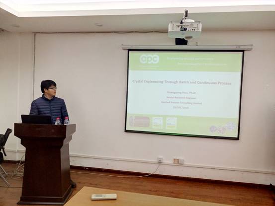 侯光阳博士讲学题目《Crystal Engineering Through Batch and Continuous Process》,讲述了间歇结晶工艺和连续结晶工艺的应用。首先,侯光阳博士针对现有制药工业中结晶过程进行了简要的说明,重点讲解了药物结晶过程中不同晶型药物的生产,以及为得到相应晶型药物所需要的工艺条件。侯博士讲解了结晶的相关理论,介绍了结晶过程的研究方法。分析了间歇结晶生产周期长、产品质量不稳定等缺点,提出了连续结晶工艺,并指出连续结晶是未来工业中发展的方向。随后,侯博士用实例说明了如何利用溶解度曲线以及过饱和度曲线进行成核控制以及过饱和度控制来研究结晶过程,并简单介绍了当前研究连续结晶过程的先进实验设备,例如聚焦光束反射测量技术(FBRM)、颗粒录影显微技术(PVM)等,讲解了这些设备在实验过程中的实际应用,以及对未来的展望。