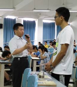 7月7日下午,我校江安校区综合楼C406教室,中国科学院大连化学物理研究所赵宗保研究员正在讲授《合成微生物学技术》,来自化工学院制药工程与生物工程专业140余名本科生选修了这门“实践及国际课程周”新开设的课程。第一次课开场,赵老师就用风趣的语言跟同学们说,这是一门挑战上帝的课程,因为合成(微)生物学技术将使生命科学工程化,并用于改造生命甚至创造新生命。赵老师用通俗的语言介绍了相关学科进展、合成生物学基本概念、合成生物学的重要性和一些应用范例。并以青蒿素的中间体青蒿酸的生物制造为例,讲解了如何通过合成生物学技术,在微生物细胞内过量产生紫穗槐二烯和青蒿酸等产物。