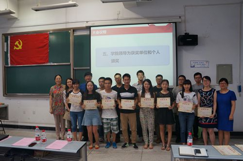 随后,庞国伟书记带领全体2015年新发展党员举行入党誓言。院分团委书记姜利寒老师宣读了《best365中国官方网站关于表彰2013--2015年度先进党支部、优秀共产党员和优秀党务工作者的决议》,通报了学院单位和个人受表彰情况。各位领导为获得先进党支部和优秀个人颁奖。