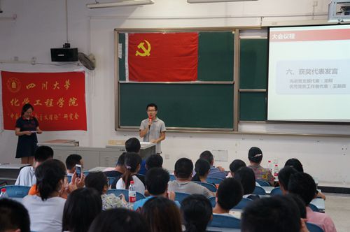 院党委庞国伟书记在会上讲话,他首先代表学校党政向全院共产党员致以节日的问候,向辛勤工作在教学、科研、管理和服务岗位上的教职工党员,向刻苦学习、蓬勃向上的青年学生党员,向关心支持学院发展建设的离退休老党员致以诚挚的问候,向受到表彰的先进单位和先进个人表示热烈的祝贺并致以崇高的敬意。随后,庞书记就庆祝建党94周年,做好学院工作谈了三点体会。一是加强党建和思想政治工作,努力打造先锋模范党员队伍,要认真落实开展践行社会主义核心价值观和“三严三实”专题教育的各项要求,把严守纪律、争当优秀作为党建工作的重要抓手,按照三分类三升级的基本要求创建先进基层党支部,不断加强基层党组织的自身建设。二是全面推进学院综合改革,着力解决影响学院发展的瓶颈问题,要深化本科教学改革和研究生教育改革,通过引进高端人才和建设科研基地提升学院核心竞争力;优化量化标准,突出质量和水平考核,改革科研评价办法;坚持和完善党政联席会议制度,加强领导班子队伍建设;认真做好本科工科教育专业认证,争取在近3年完成实现学院本科专业全认证;研究编制《best365中国官方网站“十三五”规划》 ,为学院发展指明方向。三是贯彻落实党风廉政建设“两个责任”,提高拒腐防变能力,要坚持反腐倡廉常抓不懈,坚持拒腐防变警钟长鸣,要把反腐倡廉建设贯穿于学院工作的各个领域。庞国伟书记强调,2015年是四川大学综合改革年,这对我们化工学院来说既是挑战,更是机遇。他希望全院党组织和全体共产党员牢记党的宗旨,进一步增强责任感和使命感,在工作中充分发挥战斗堡垒和先锋模范作用,为实现建设国内一流化工院校的发展目标,开创学院各项事业科学发展的新局面而努力奋斗!