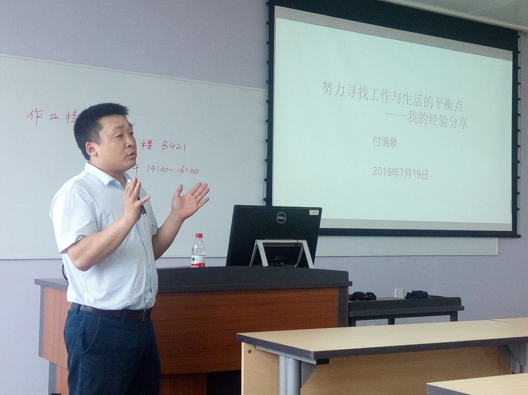 2018年7月19日下午成都伊诺达博医药有限公司付清泉总经理为我院同学带来国际课程周“制药与生物工程学科前沿”系列讲座最后一场——努力寻找工作与生活的平衡点。