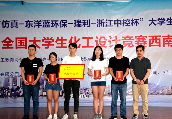2018年大学生化工设计竞赛暨第十二届全国大学生化工设计竞赛西南赛区决赛于8月1-5日在重庆三峡学院隆重举办,有来自云、贵、川、渝4省市25所高校的60支参赛队参加现场角逐。我校从报名参赛的七支团队中筛选出猎梦2018、F-Road、励远和F-NPC四支团队参加赛区总决赛的角逐。最终,由冯怡、邓鑫雨、范学英、王梦瑶、陈琳等五位同学组成的四川大学猎梦2018团队荣获西南赛区银奖,将作为西南赛区的代表之一参加全国总决赛。其他团队分获西南赛区一等奖、二等奖等奖项。在竞赛中,我院的所有参赛队伍团结协作,克服困难,很好地展示自己的水平,向与会参赛队伍展示了川大学子的风采,在此向所有参赛选手和辛勤的指导教师表示祝贺。