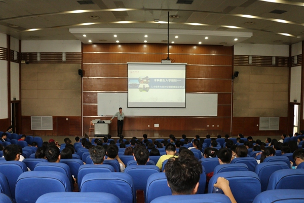 余徽副院长详细地介绍了本科生人才培养方案和学籍管理规定要点。他指出,新生们应该“严格学业管理,提高学业挑战度”,贯彻落实新时代全国高等学校教育工作会议精神,刻苦学习,助力国家,实现教育报国、教育强国梦。