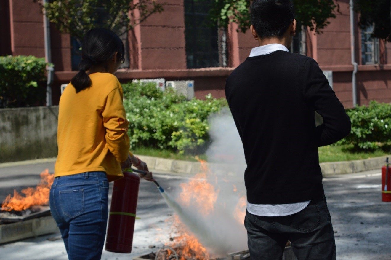 上午10点,在正行楼门前消防演练正式展开。化工学院党委副书记、纪委书记李天友和学院安全秘书胡毅老师莅临现场指导。教练详细地给同学们讲解了灭火器、灭火毯、消防沙的使用方法。在教练的指导下,同学们依次上前进行灭火操作,学习了正确的灭火操作技巧。
