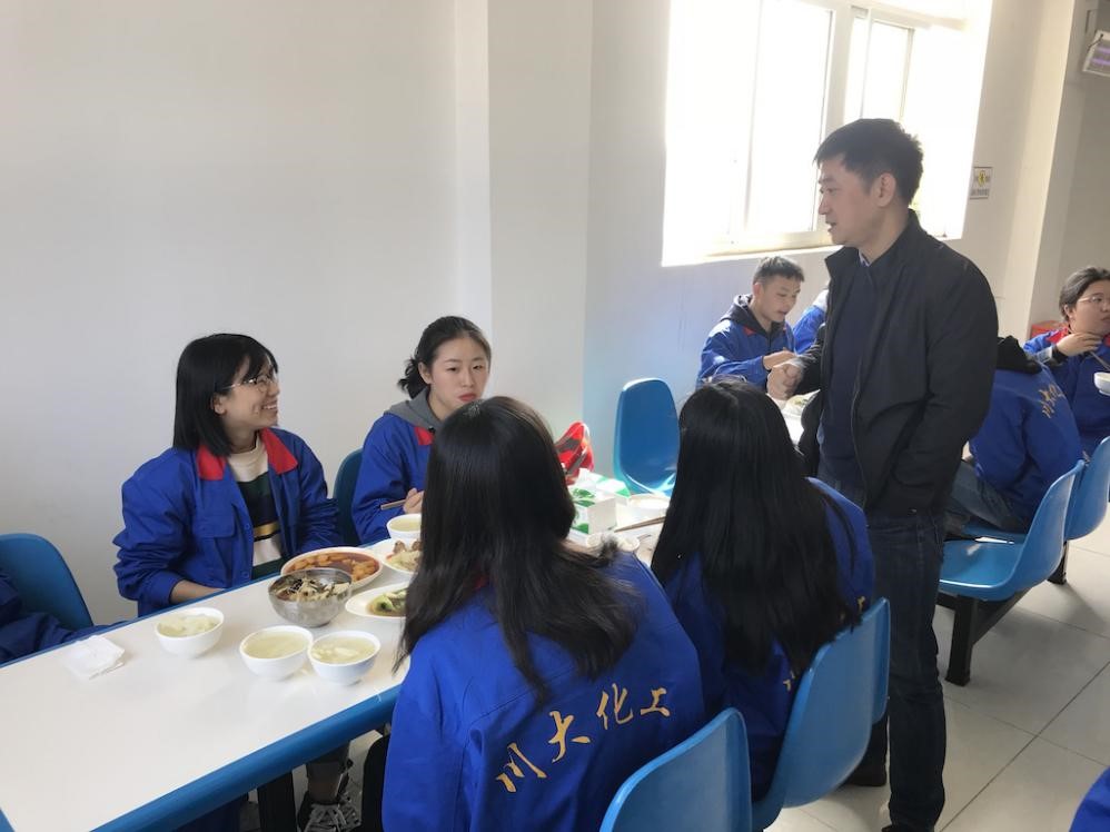 随后,余徽代表学院对带队实习教师郭孝东、蒋绍志、吴振国等教师对于实践教学的辛勤付出表示了诚挚感谢,并与老师们一同慰问了实习学生。实习学生纷纷表示此次实习内容丰富,收获满满,对于本专业的工艺流程、设备设计和自动控制等有了更加深刻的认识,学院在相关食宿条件方面的贴心安排为紧张的实习过程提供了有力的保障。