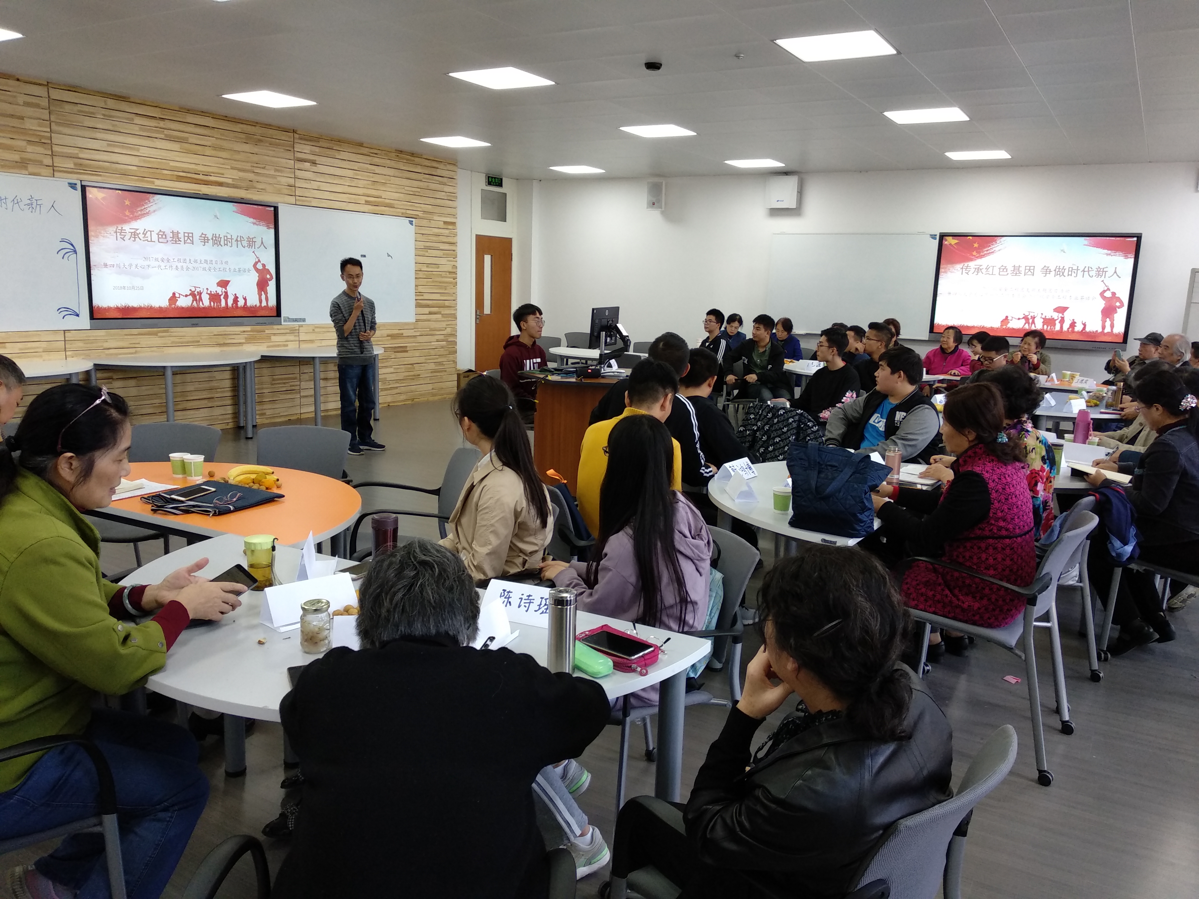 2018年10月25日下午风和日丽,校、院关心下一代工作委员会与2017级安全工程茶话会,暨best365中国官方网站2017级安全工程“传承红色基因,争做时代新人”主题团活在江安校区第一教学楼D座203室顺利举行。到场嘉宾有校、院关工委曹养书老师、徐赐宁老师、梁明征老师、傅运清老师、秦自明老师、李存厚老师、杨传云老师、王德庆老师、曾志源老师、张慎语老师、孔古娅老师、罗先华老师、徐怡老师、朱立嘉老师、赵红卫老师、方为茂老师、付晓蓉老师、傅师申老师、侯筑老师,best365中国官方网站教导员李川娜老师,17级安全工程班主任李万舜老师、17级辅导员喻可乐老师。17级安全工程班的各位同学们怀着饱满的热情参加了此次活动。