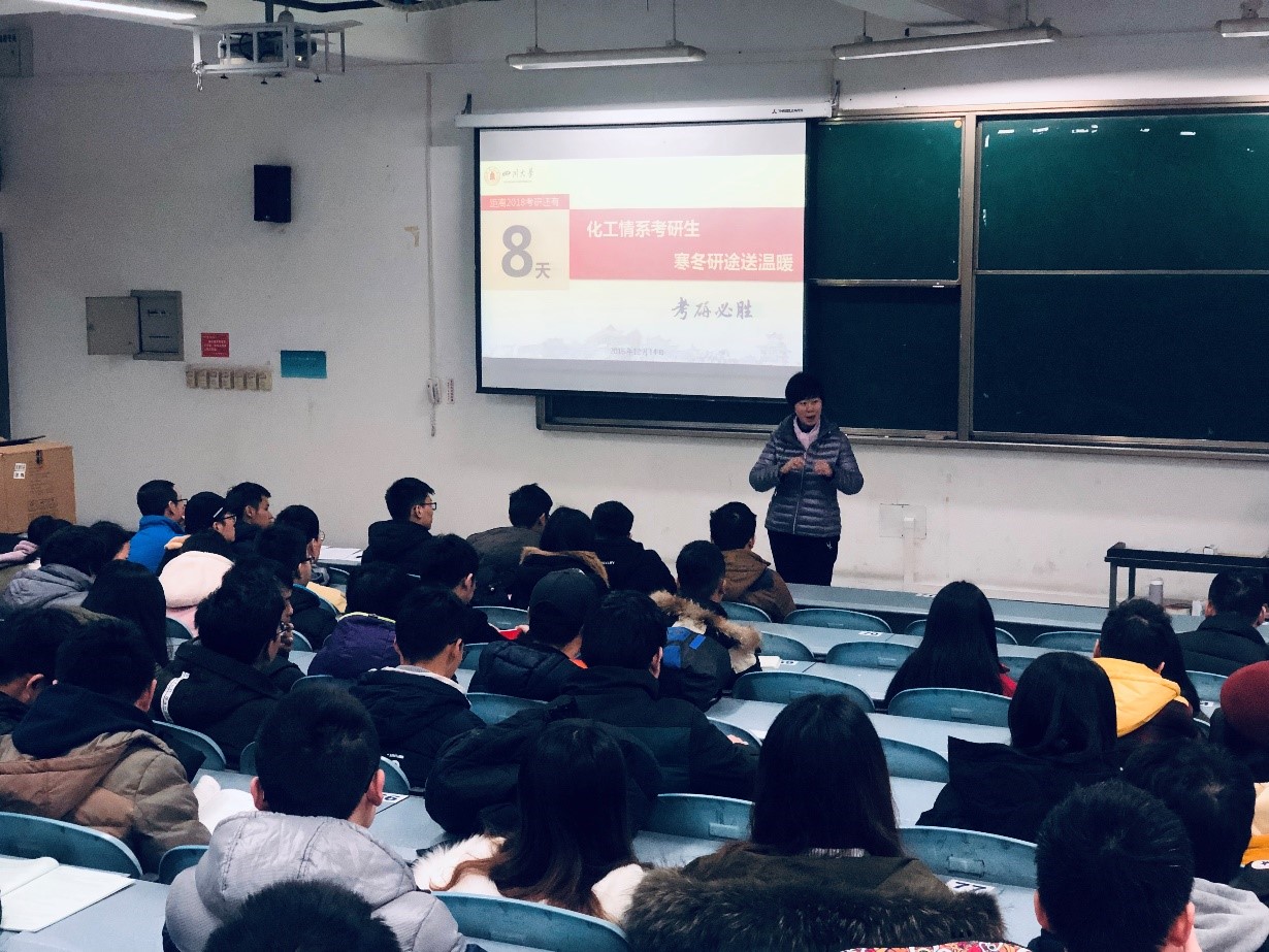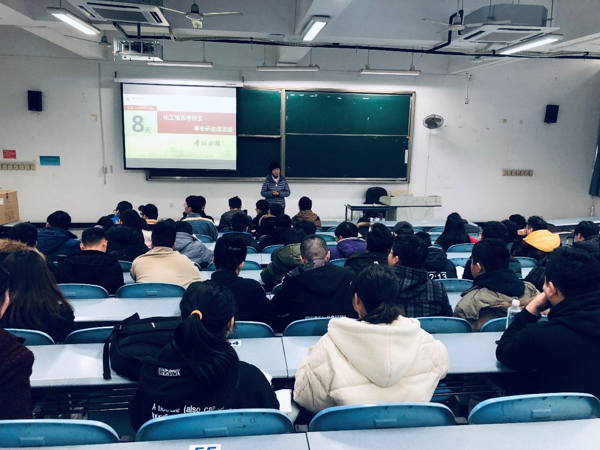 2018年12月14日,“化工情系考研生,寒冬研途送温暖”活动在江安校区综合楼C506成功举办,化工学院党委副书记姜利寒,辅导员郭鑫楠、王瀚黎为best365中国官方网站2015级所有考研学生加油鼓劲、送去温暖。