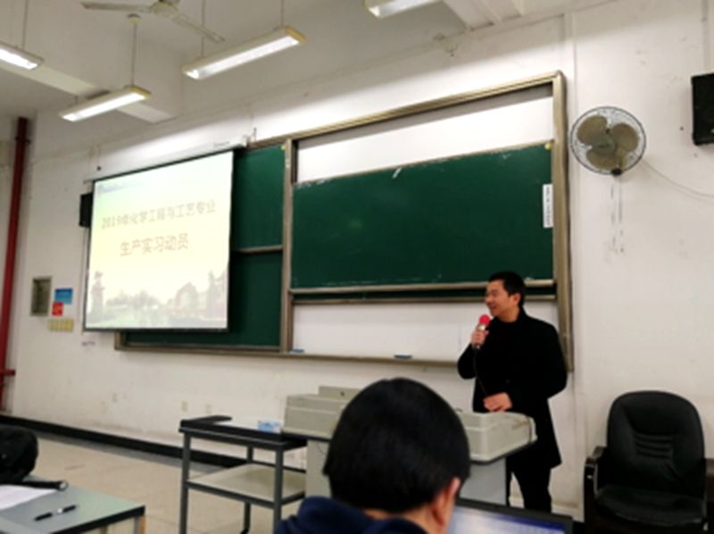 化工系主任袁绍军教授指出,学院、系领导高度重视化工专业学生的工程实践能力培养,希望大家能够珍惜这次实习机会。袁绍军教授还提醒大家在生产现场、往返路途一定要注意安全。重庆天然气净化总厂员工培训部甘建国主任代表实习企业对大家表示了热烈欢迎。甘主任还提到,近年来,我院化工专业有10余名毕业生进入该厂工作,表现非常出色,展现出了我院化工专业毕业生扎实的专业知识和深厚的文化底蕴,高度赞扬了我院化工专业本科生的培养质量。院长助理、化工实训教研室主任郭孝东教授强调了化工生产实习的重要性,介绍了实习工作中的注意事项,并对化工生产实习工作进行了布置。陈建钧老师对全体学生进行了实习安全教育和PVC工艺流程介绍。
