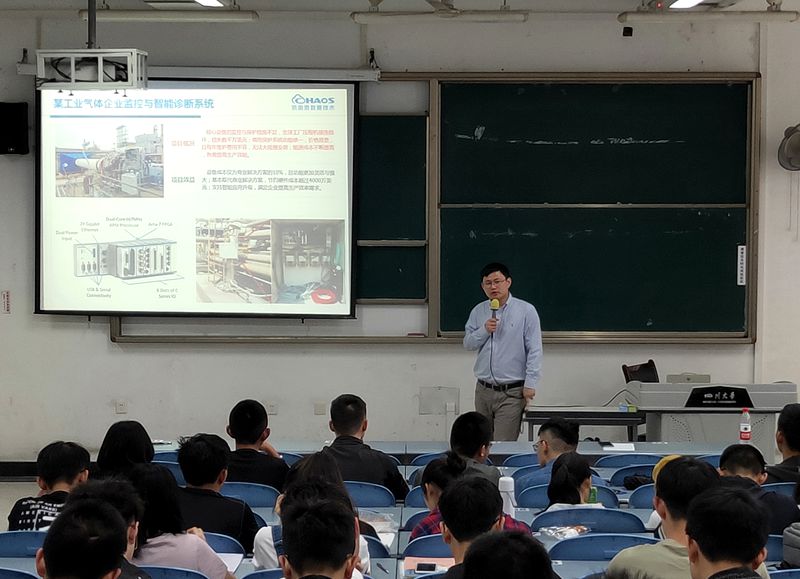 随后,杨世飞博士针对本次主题深入展开讲座。首先,杨世飞博士简单介绍了团队创办的CHAOS数据技术公司,包括设备保护监控、电力生产监控、运输优化等基于大数据分析的工业生产流程。随后,杨世飞博士以自身经历为切入点,结合团队企业对人才类型地招收标准,深入分析了现代职业所需要的人才,并对同学们提出合理而有力的建议。例如,在本科期间可以适当丰富自己的实习经历,这将在往后的求职过程中提高个人竞争力。同时,要不断锻炼自己独立思考、与人沟通的能力,抓住机会去尝试交流。不要沉迷游戏,要多读一些不同类型的书,以开拓视野。面对本科生人数庞大的现况,杨世飞博士鼓励同学们考研,成长为具有扎实专业知识的新型复合型人才。他强调一个学生要首先清楚自己适合什么类型的工作,以选择更加适合自己的发展道路。同时提醒同学们只有在人生的前期掌握真本领,把“刀”打磨锋利,才能在人生中拥有更多的自由选择权,去过自己想要的生活。