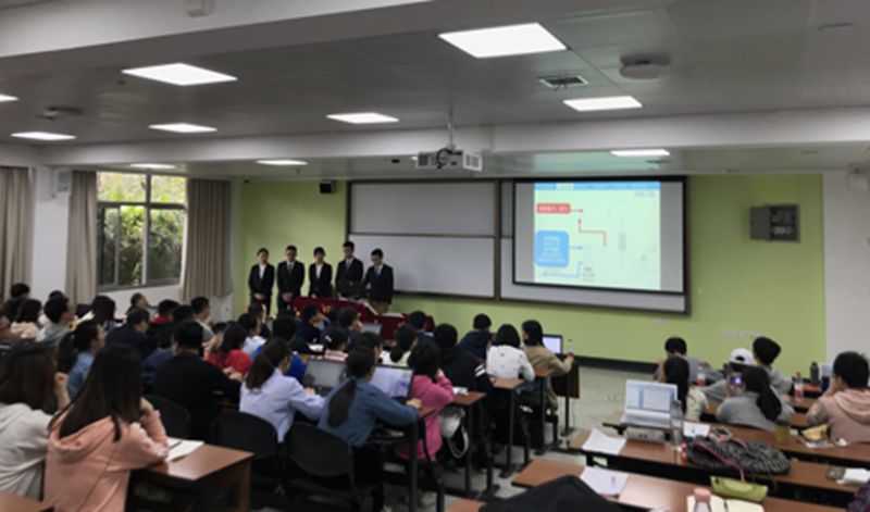 上午9时,决赛答辩在江安一教B103进行,参赛小组以答辩的形式进行比赛,答辩环节分为15分钟作品介绍时间和15分钟评委点评提问时间,每支队伍选手们着正装上台介绍提交的作品,分析工艺流程、介绍厂图、进行经济分析和分析创新性等,流利具体地结合答辩ppt介绍本组作品,然后由本校以及外校评委点评提问,提出作品存在问题,并给予改进意见,最后由评委和往届获奖队伍打分,同时参赛队伍互评,分出名次。