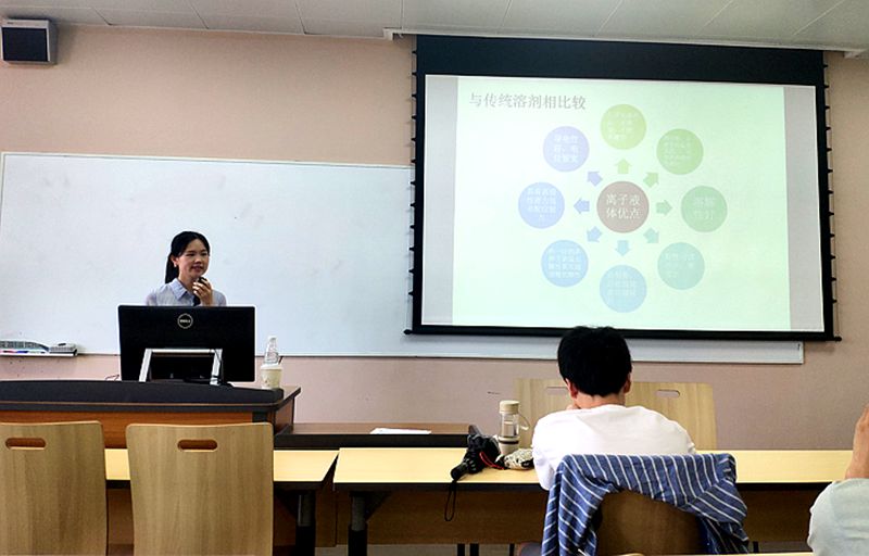随着学校国际课程周的开幕,2019年7月10日星期三下午13:50在第一基础教学楼A座106教室,best365中国官方网站国际周制药与生物工程学科前沿课程第六课开课。本次课由来自湖南师范大学生命科学学院的丁雪沁老师为制药工程与生物工程的同学们讲授设计师溶剂-离子溶液的相关知识内容。