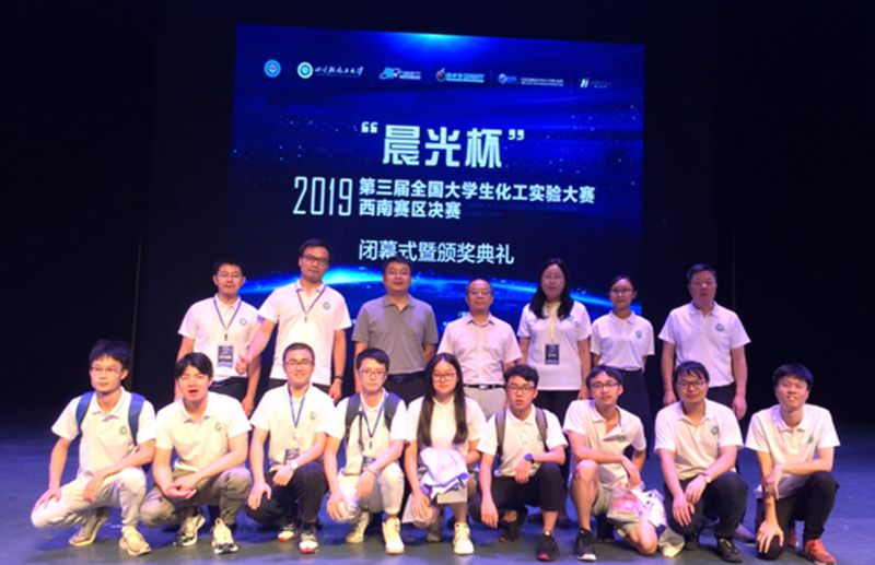 2019年7月19日至21日,2019“晨光杯”第三届全国大学生化工实验大赛西南赛区决赛在四川轻化工大学举行。本次竞赛从2019年5月开始启动,共有来自云、贵、川、渝、桂等地39所高校的500多支队伍报名参赛。经过赛区初赛选拔,由我院熊山威、周昌海、吴媛媛三位同学组成的“EXPN队”,谢鑫、张正、范钲威三位同学组成的“不屈意志队”及李玉铭、谢成林、傅子森三位同学组成的“生工也要学化工队”成功入围赛区决赛。