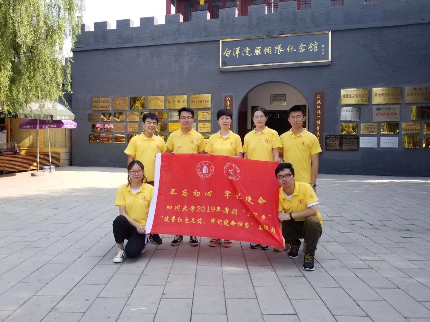 2019年7月24日-29日,四川大学“不忘初心,牢记使命”实践团三分队best365中国官方网站师生在学院党委副书记姜利寒带领下,赴河北省西柏坡、雄安新区白洋淀和北京等地开展暑期社会实践活动。师生一行追寻中国共产党发展壮大足迹,感悟革命精神,重温中华人民共和国从创建走向富强的历程,感受70年中国伟大飞跃。