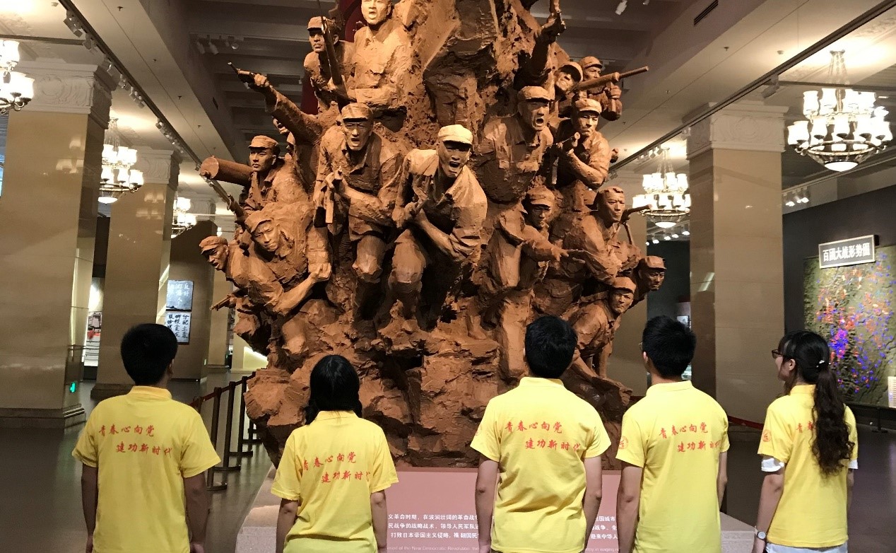 7月28日,实践团队来到了中国人民军事博物馆,成员们主要参观了“中国共产党领导的革命战争陈列”展厅。在波澜壮阔的革命战争中,中国共产党人身先士卒、敢为人先,赢得了革命战争的胜利,迎来了中华人民共和国的诞生。在参观的尾声,姜副书记展开了一场“微团课”,回顾了革命战争时期,我党人民军队以弱胜强、以劣胜优的战斗精神和光荣传承,希望新时代团员青年应增强“四个自信”和“四个意识”,勇担时代使命,发扬求是精神。下午,实践团队进入了中国国家博物馆,成员们集体主要参观了“复兴之路”展厅。展厅详细展示了“中国沦为半殖民地半封建社会”、“探求救国图存的道路”和“中国共产党肩负起民族独立人民解放历史重任”三个主题,展现了党于祖国危急存亡之际力挽狂澜的雄伟魄力和建国以来彪炳史册的光辉复兴历程,生动诠释了没有共产党就没有新中国的内涵,当珍惜美好生活,饮水思源,继承优良革命传统,全心全意为人民服务。