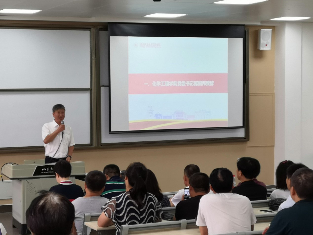 会议伊始,庞国伟书记代表学院全体师生向新生家长致以热烈的祝贺和欢迎,同时对家长十多年来的辛苦付出表达了衷心的感谢。随后庞书记对四川大学和best365中国官方网站基本情况做了简要概述,提到化工专业师资队伍强大,奖助体系完善,且毕业生社会需求量大,就业前景广阔。并详细介绍了学院创新型人才培养平台,特别提到互联网+化工的智慧化工,让家长对学校和学院有了详细的了解。