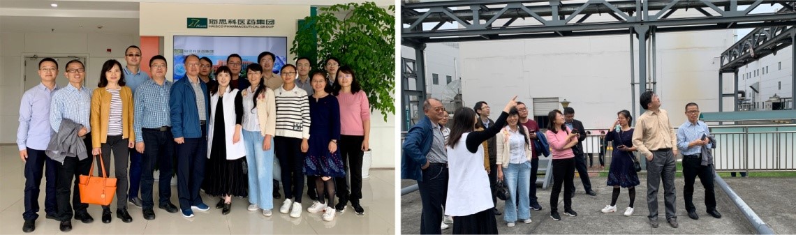 随后,老师们参观了四川海思科医药集团股份有限公司眉山分公司。该公司主要从事原料药和固体制剂的生产,拥有片剂、胶囊剂、颗粒剂、软膏剂和原料药等产品类别的多条生产线。我院校友、公司总经理冯卫女士为老师们详细介绍了公司的发展历程、战略目标、研发投入和社会服务等方面的情况。我系就实习基地建设、人才培养等问题交换了意见。随后,老师们参观了原料药生产车间、储料罐区和污水处理系统,并就药物合成车间的生产规范、防爆设施设备、反应和分离设备、物料运输和传质传热等问题进行了交流。