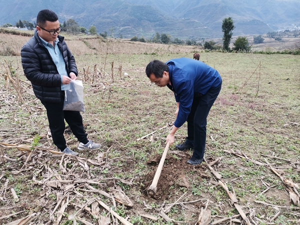 杨林、严正娟两位老师还发挥专业优势,深入了解了格布村主要农作物的种植情况,并在多个区域采集了土壤样本,将根据格布村农作物对土壤的不同要求,提出改善肥效的方案,为下一阶段帮扶工作提供技术支持。